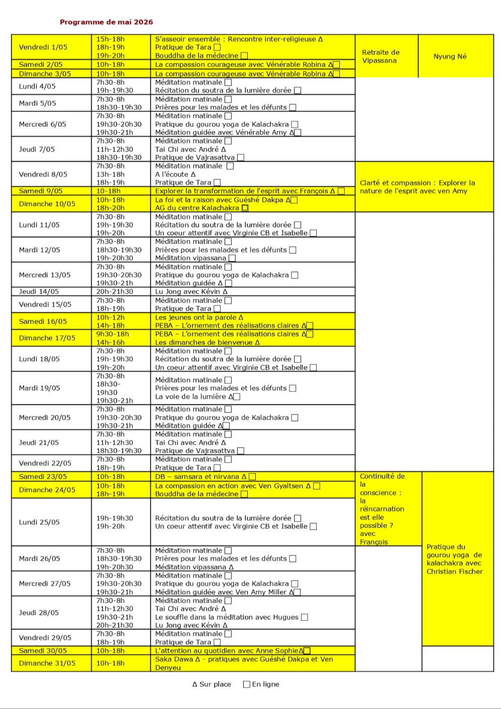 Le soir du 10 mai, c'est l'AG du centre Kalachakra sur zoom. Si vous êtes membre, c'est le moment de nous réjouir de tout ce qui a été accompli et pour échanger sur la vie de l'association, entendre les projets, nous faire un retour sur ce que vous avez apprécié ou souhaitez changer.