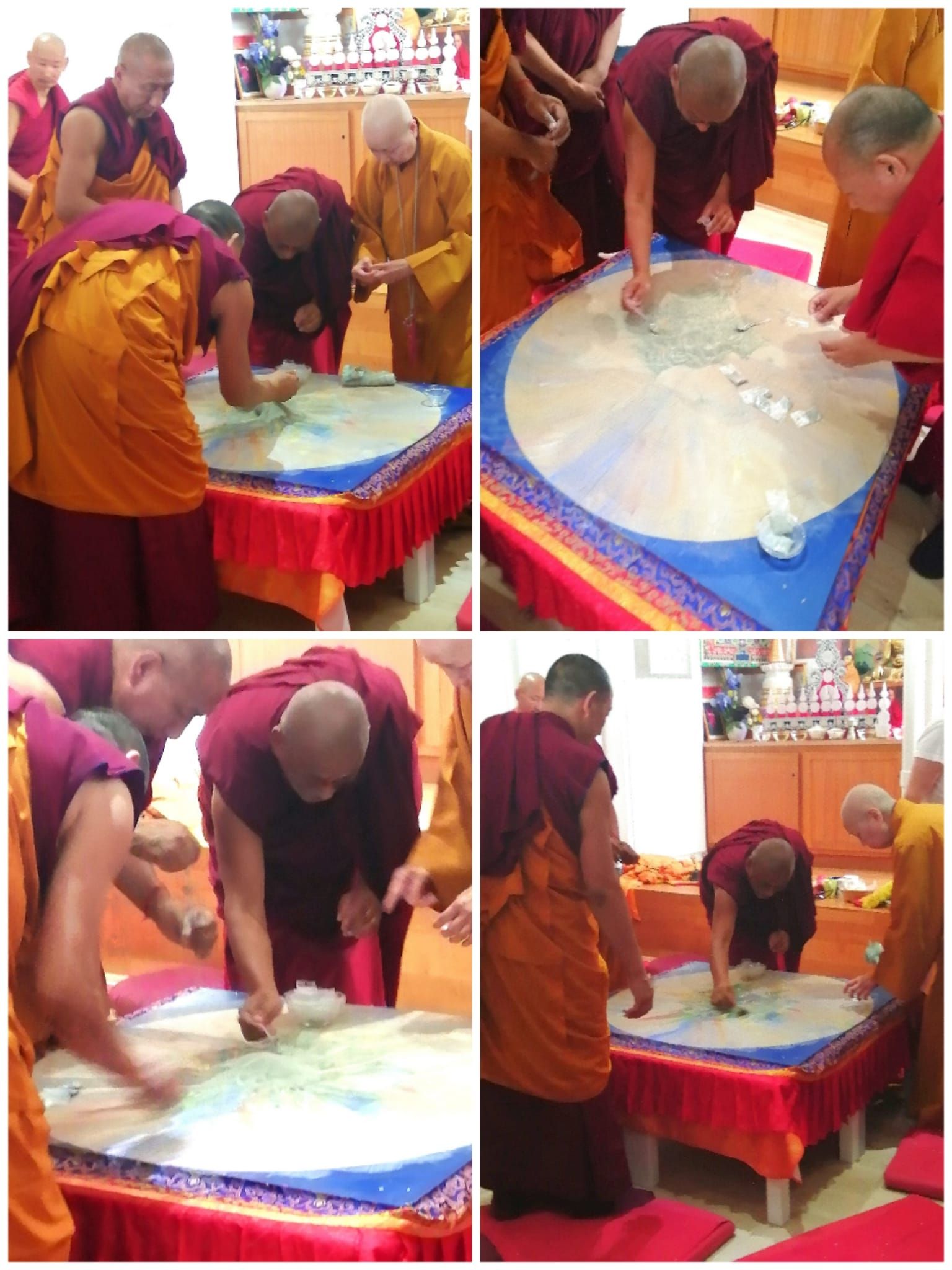 Le 28 juillet dernier, c'était la fête du Chokhor Duchen. En plus d'être un des quatre jours auspicieux annuels du Bouddha Shakyamuni, c'était pour la FPMT la journée internationale de la sangha ordonnée. À cette occasion, le Vénérable Shérab (du monastère Nalanda) ains que les Vénérables Gyaltsen, Öser et moi-même du centre Kalachakra, avons eu la chance de pratiquer avec les retraitants de mahamoudra, une pratique de Lama Tcheupa.